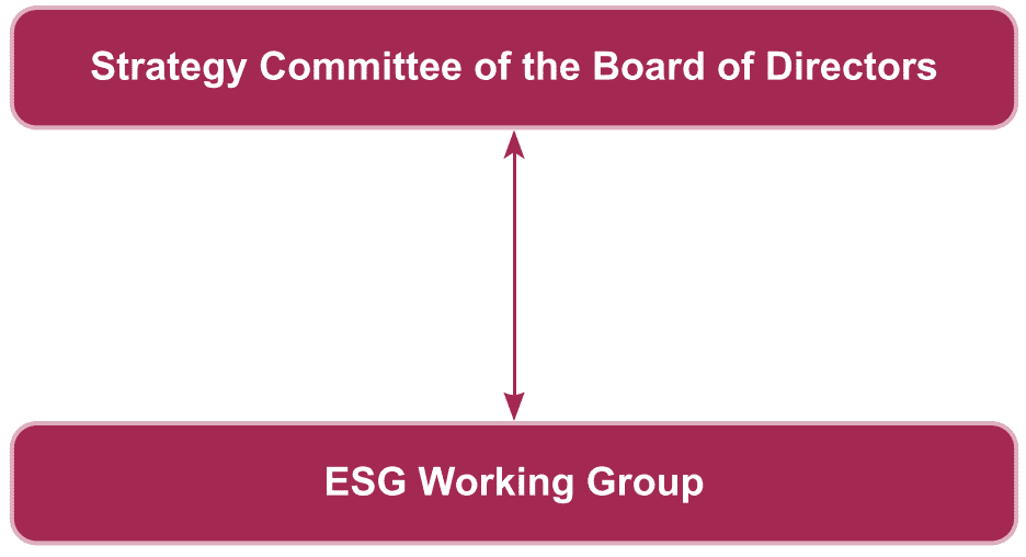 The Company abides by the requirements of the Rules of Procedure of the Board of Directors and the Working Rules of the Strategy Committee of the Board of Directors. On this basis, the Company has clearly stipulated that the Strategy Committee of the Board of Directors is responsible for overseeing and inspecting the implementation of the Company's ESG Working Group, providing guidance when necessary, reviewing the Company's ESG report, ESG-related policies and other major ESG-related matters, conducting research on ESG governance and providing decision-making advice to the Board of Directors, including ESG governance vision, goals and policies. The ESG Working Group is primarily responsible for developing the ESG work implementation plan and coordinating the assessment and management of ESG risks and opportunities.
