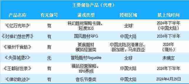 公司有多款储备产品,,,涵盖放置类、、、策略类、、、RPG、、、Roguelike等多元化游戏品类,,储备的主要自研和代理产品如下:::